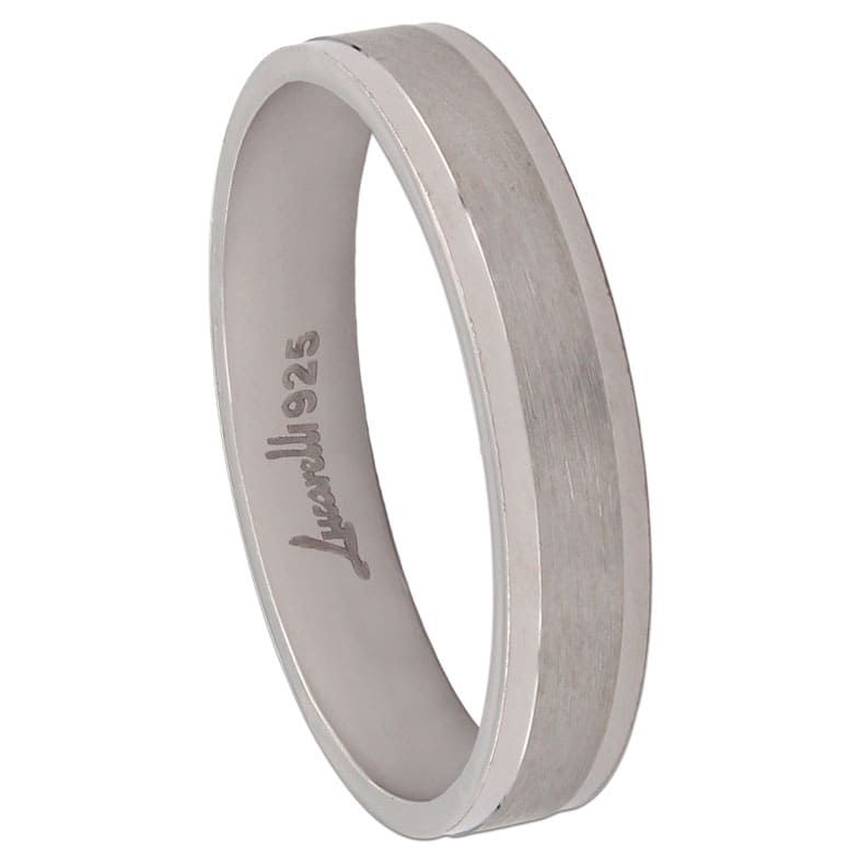 Alianza matizada, en plata de 1ªley con baño de rodio, con un ancho de 4 mm y un grosor de 1,58 mm.