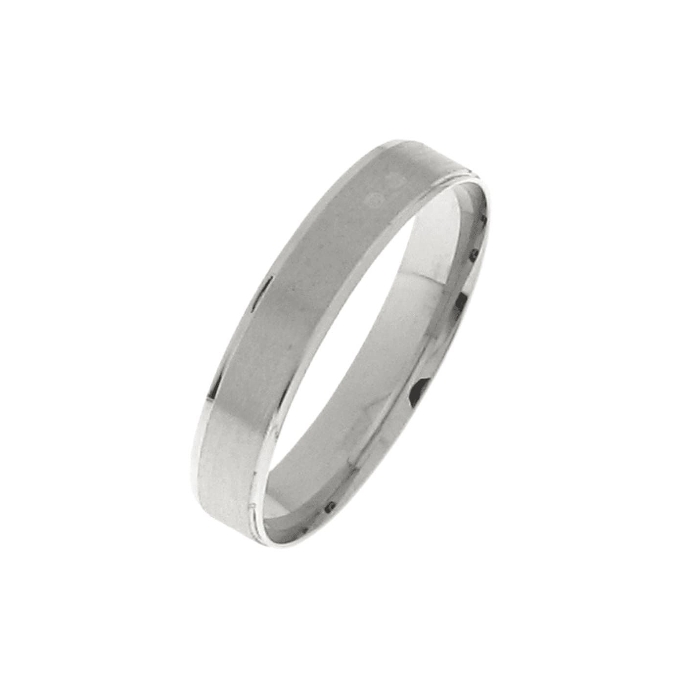 Alianza de oro blanco de 1ªley matizada con 4 mm de ancho, con disponibilidad de elección para la talla de cada dedo.