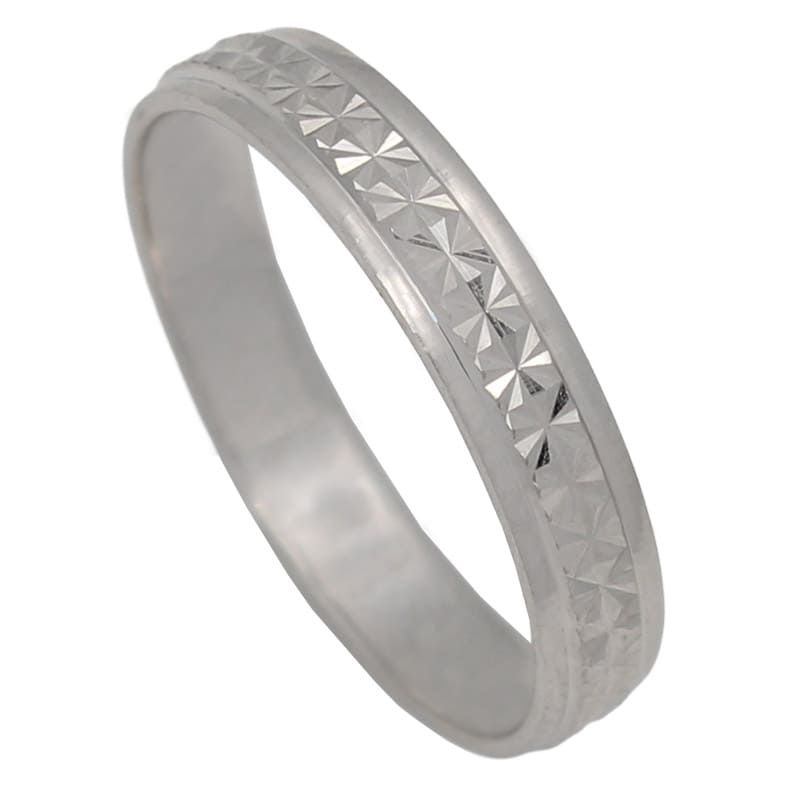 Alianza de oro blanco de 1ªley tallada con 4mm de ancho, con disponibilidad de elección para la talla de cada dedo.