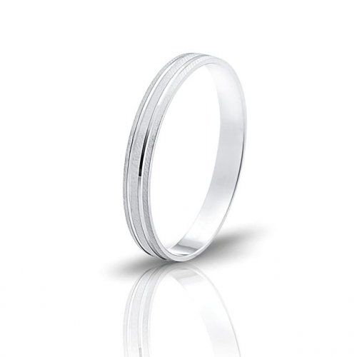 Alianza de oro blanco de 1ªley tallada y matizada con 3 mm de ancho, con disponibilidad de elección para la talla de cada dedo.