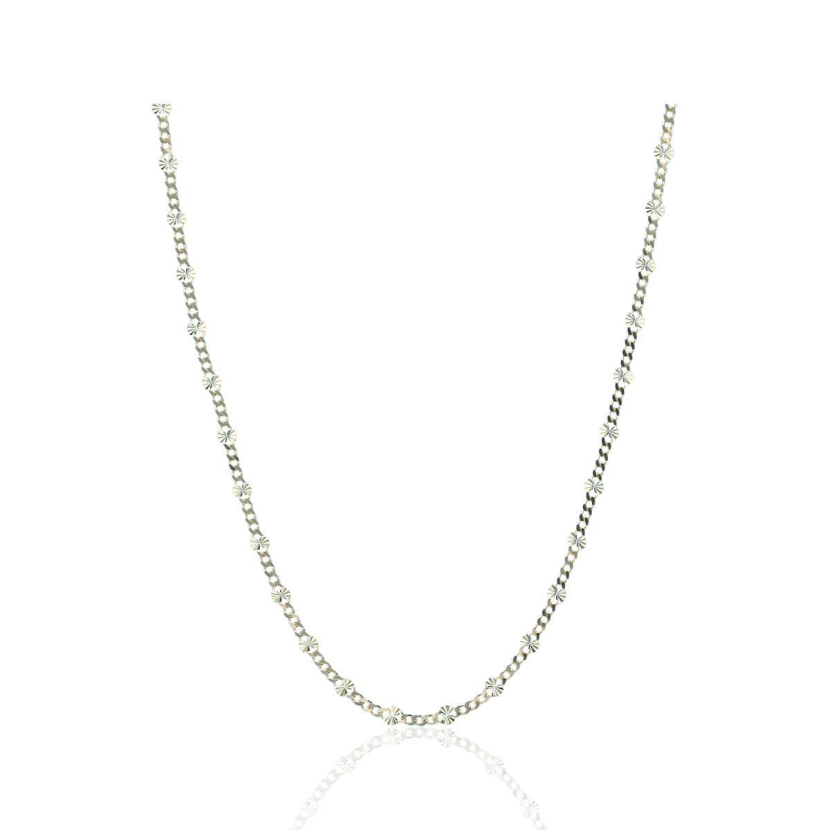 Cadena con eslabón barbado combinado con Estrellas, en Oro Blanco de 18kts, 1ªLey.
