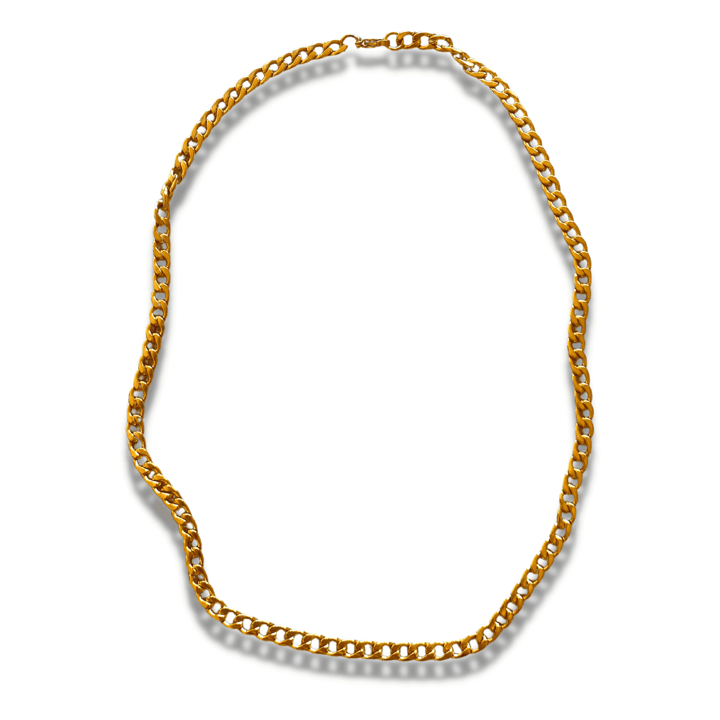Cadena con eslabón de tipo barbado hecha en acero chapado en oro, con 50 cm de largo.