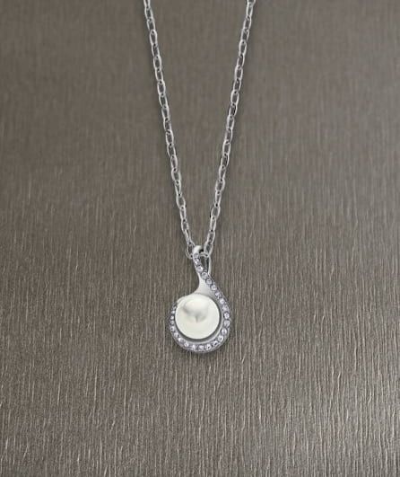 Con circonitas engastadas, perla y cadena de 45 cm de largo.