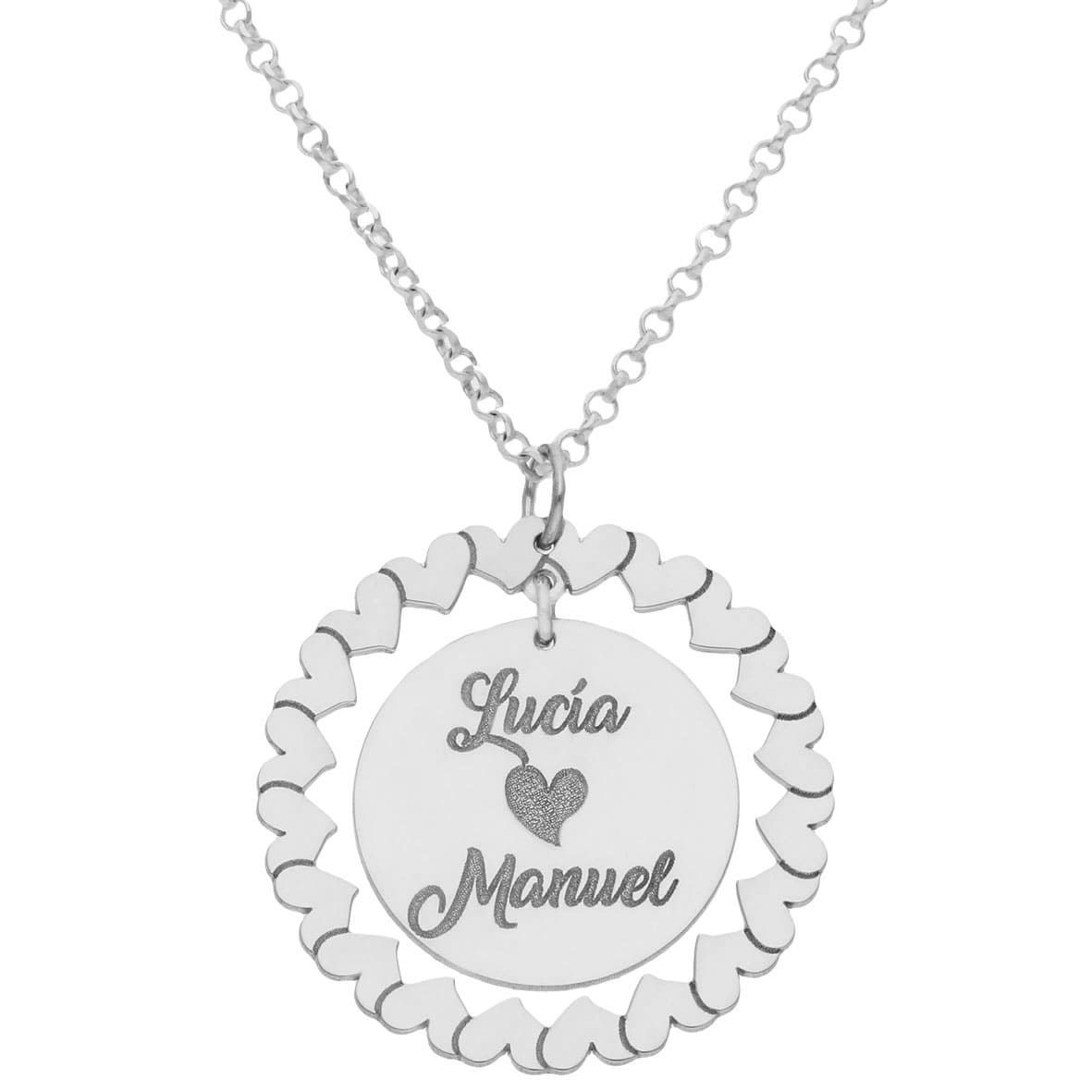 Colgante personalizado con cerco de corazones en plata de 1ª ley, 925 mm.