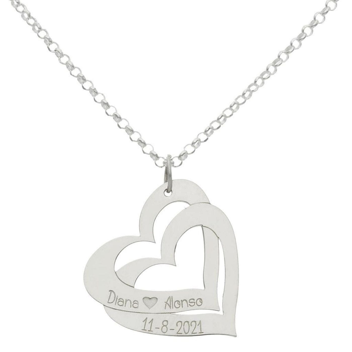 En forma de dos corazones entrelazados, con opción de grabado en ellos.