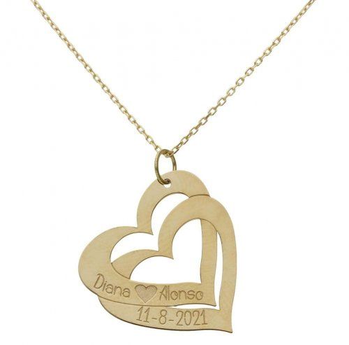 Gargantilla con 2 corazones personalizados, en Oro de 1ªley, 18kts.