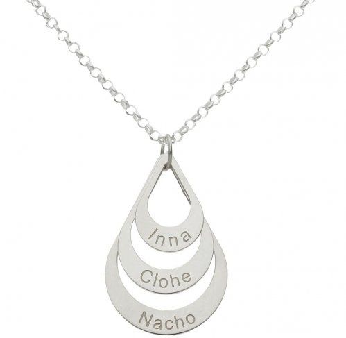 Gargantilla con 3 colgantes en forma de lágrima personalizados, en plata de 1ª ley, 925 mm.