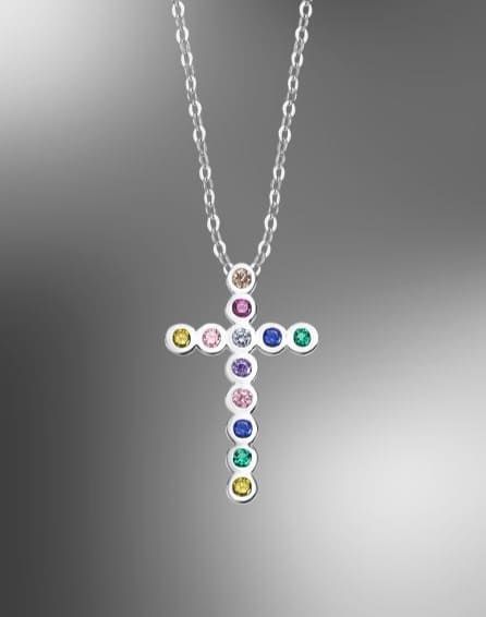 Con circonitas de color engastadas y cadena de 45,50 cm.