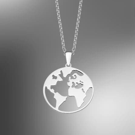 El símbolo del mapamundi es un regalo perfecto y original, aquí en Joyería Carretero lo encontrarás en esta forma y en muchas más, como pulseras, pendientes, gargantillas; en plata, plata chapada, u oro de 18kts.