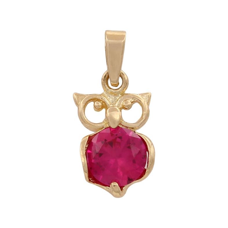 Colgante en forma de Búho con circonita redonda en color burdeos, en oro de 1ªley, 18kts.