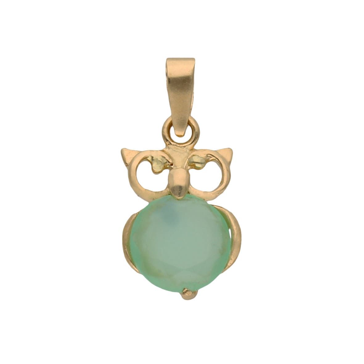 Colgante en forma de Búho con circonita redonda en color esmeralda, en oro de 1ªley, 18kts.