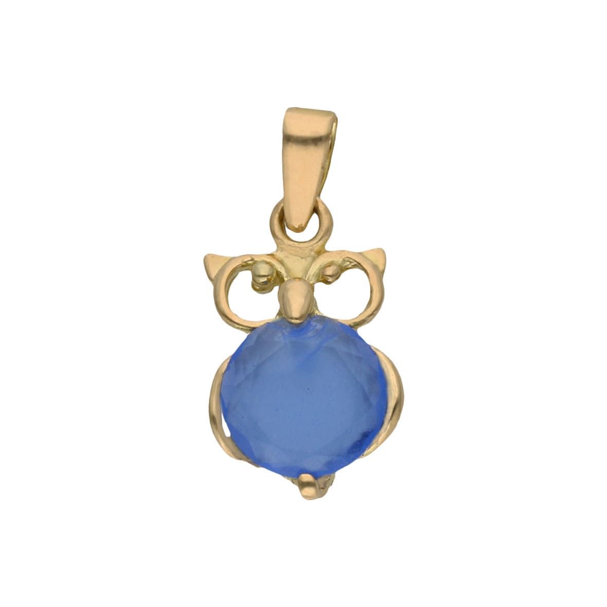 Colgante en forma de Búho con circonita redonda en color azul, en oro de 1ªley, 18kts.