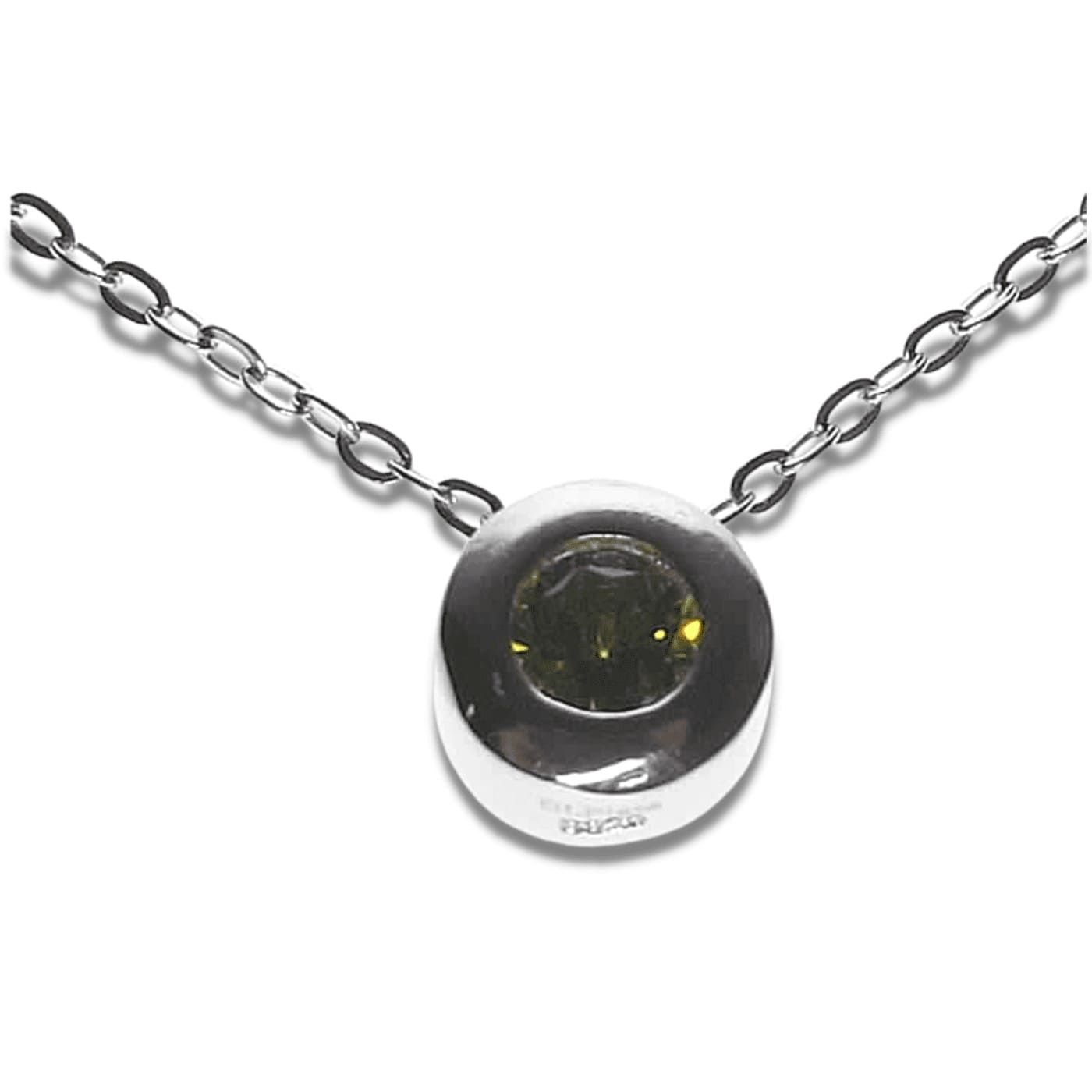 Con chatón circular de circonita en tono esmeralda, y además con un baño de rodio.
