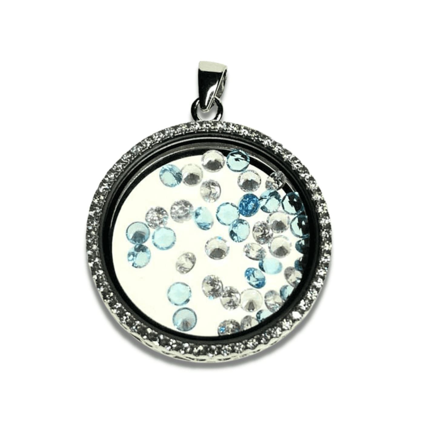 Con baño de rodio y circonitas en tono piedra Aguamarina.