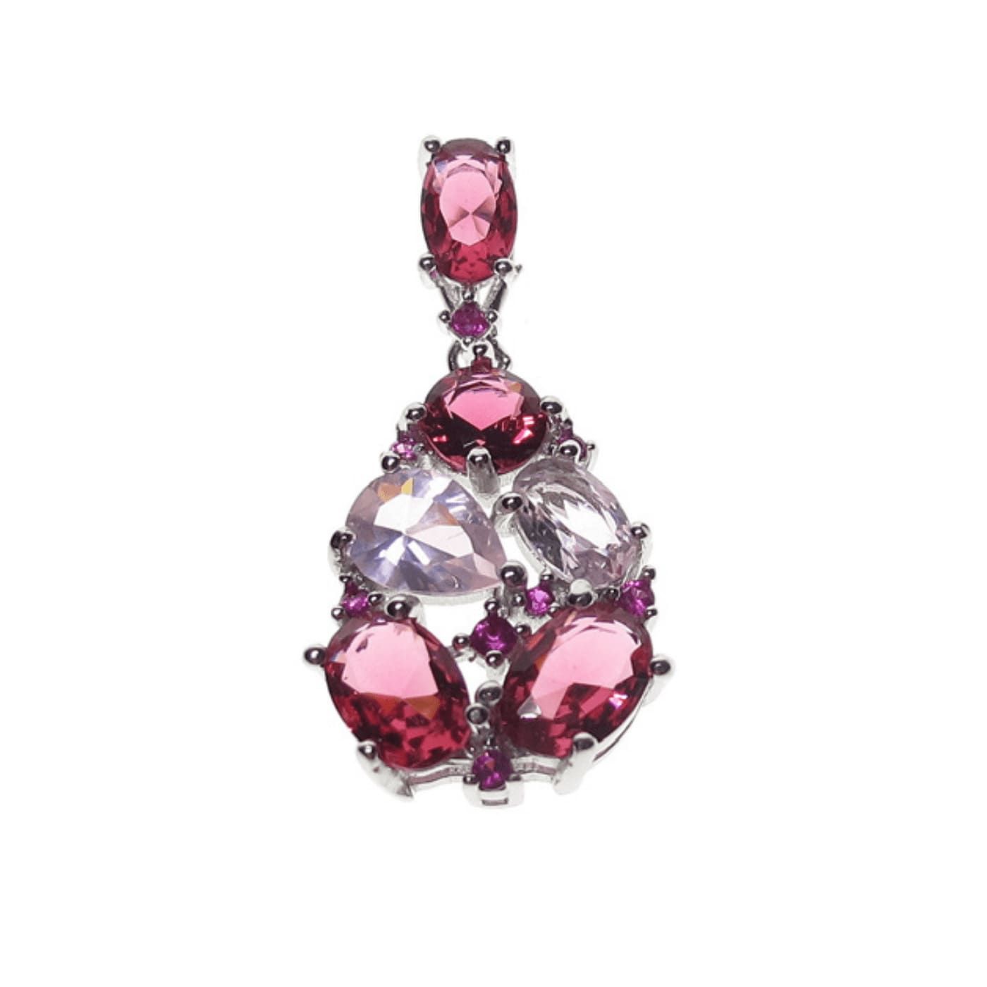 Colgante de piedras rojas en Plata de 1ªley, 925 mm.