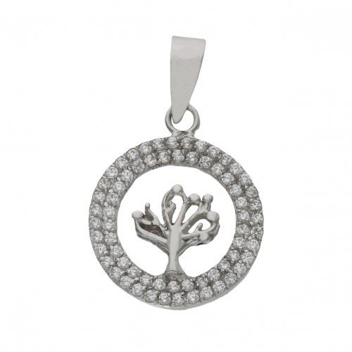 Colgante en forma redonda con el Árbol de la vida en su interior, en oro blanco de 1ªley, 18kts.