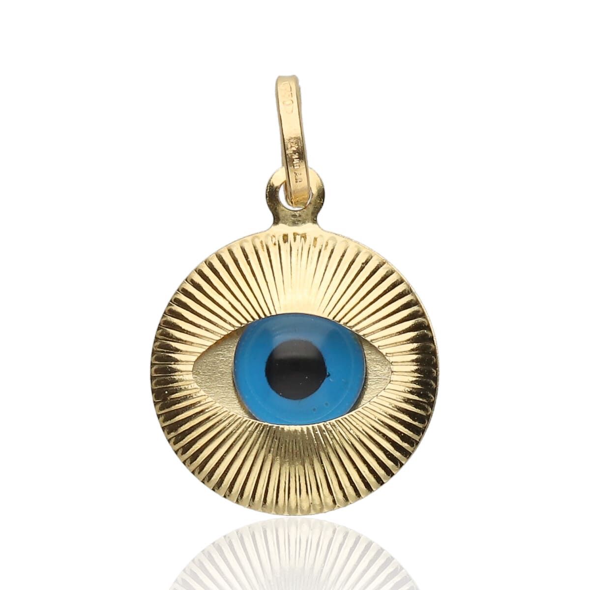 Colgante Redondo Tallado del Ojo Turco, en Oro de 1ªLey, 18kts.