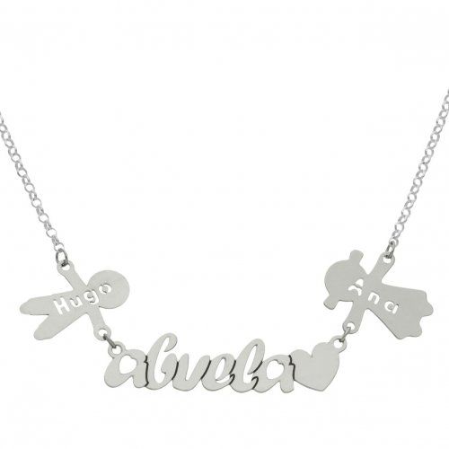 Gargantilla personalizada de nombre con Niños, en Plata de 1ªLey, 925 mm.