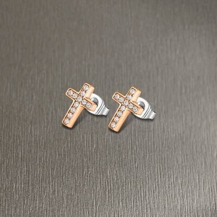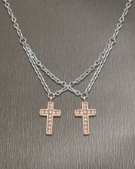 Gargantilla de Acero chapada en oro rosa, con colgantes de cruz y circonitas engastadas.