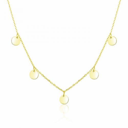 Con baño de oro, y abalorios redondos colgando de una cadena de tipo forzada.