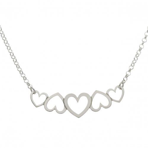 Gargantilla con corazones de plata de 1ª ley, 925 mm.