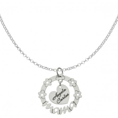 Gargantilla con corazón dentro de un cerco de Flores, en Plata de 1ª ley, 925 mm.