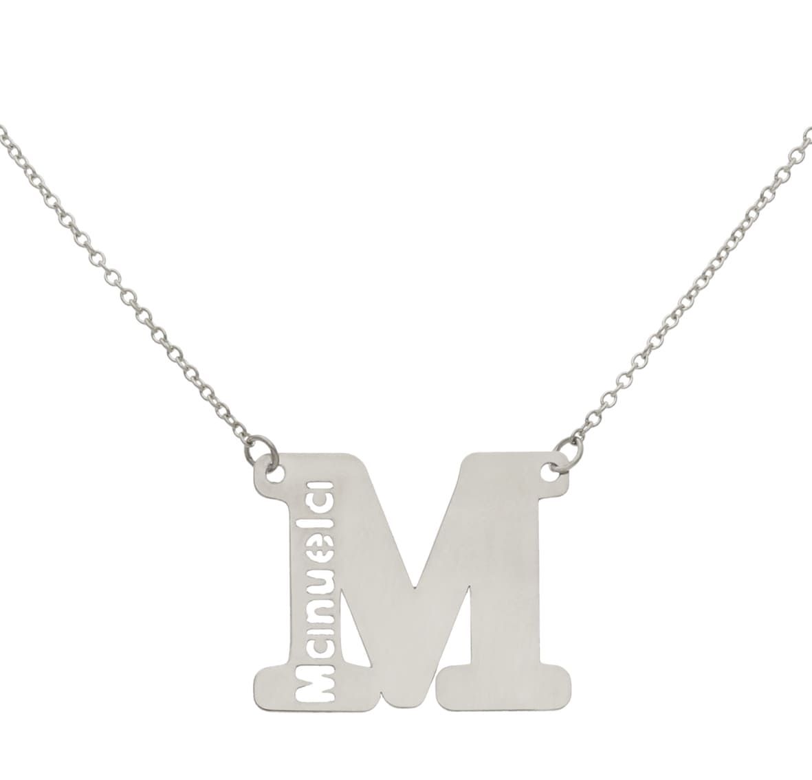 Gargantilla con letra y nombre calado personalizados en plata de 1ª ley, 925 mm.