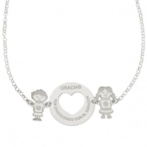 Dispone de un niño y una niña a cada lado, y en ella se puede grabar una frase, nombres, fechas, palabras...