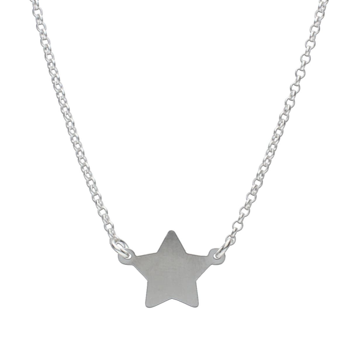 Con estrella enlazada a cadena tipo rolot con 2 mm de ancho y 48 cm de largo.