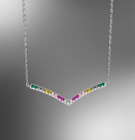 Con 23 circonitas de color de 1,20 mm engastadas, y 45 cm de largo de cadena.