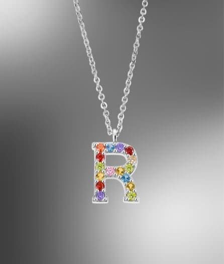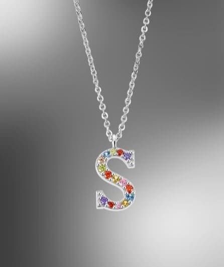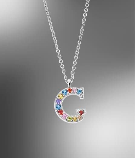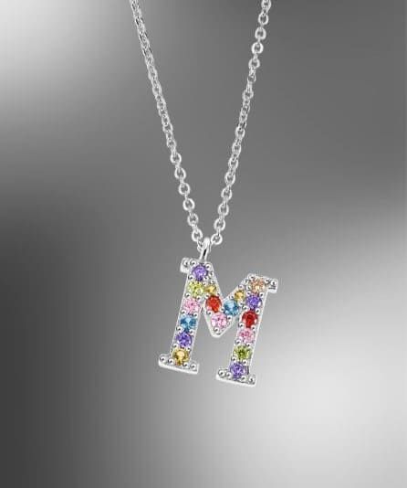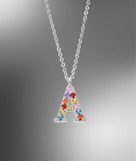 Con circonitas de color engastadas y un largo de cadena de 45 cm.