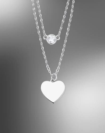 Con motivo de corazón, circonita en chatón y 45 cm de largo de cadena.