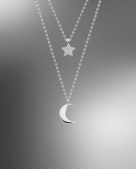 Con circonitas engastadas, motivo de Luna y Estrella, y 45 cm de largo de cadena.