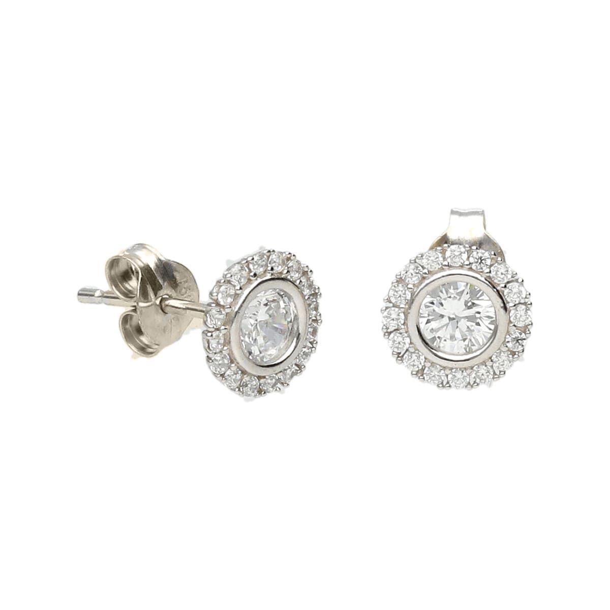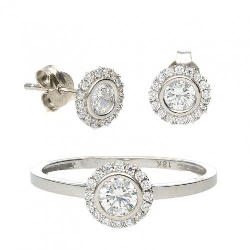 Juego de Sortija y Pendientes, en Oro Blanco de 18kts, 1ªLey.