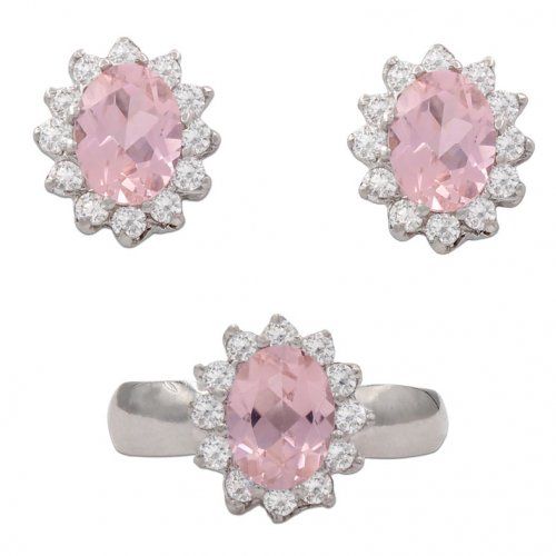 Pendientes con piedras nano morganita y circonitas engastadas.
