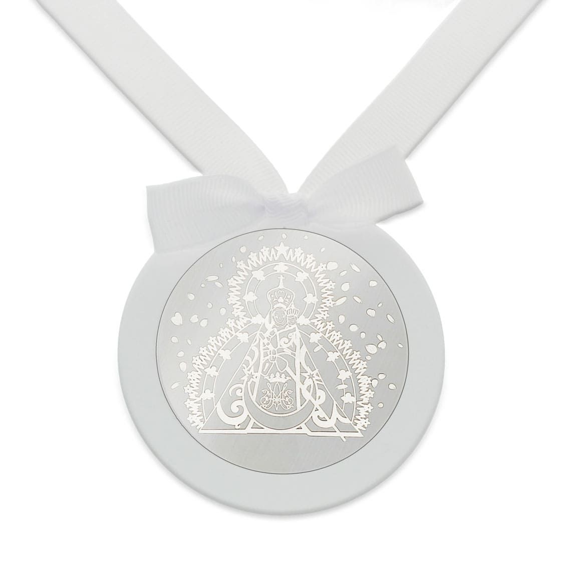 Medalla de Cuna con Chapa Redonda grabada con la Virgen de la Cabeza, en Plata de 1ªLey, 925 mm.