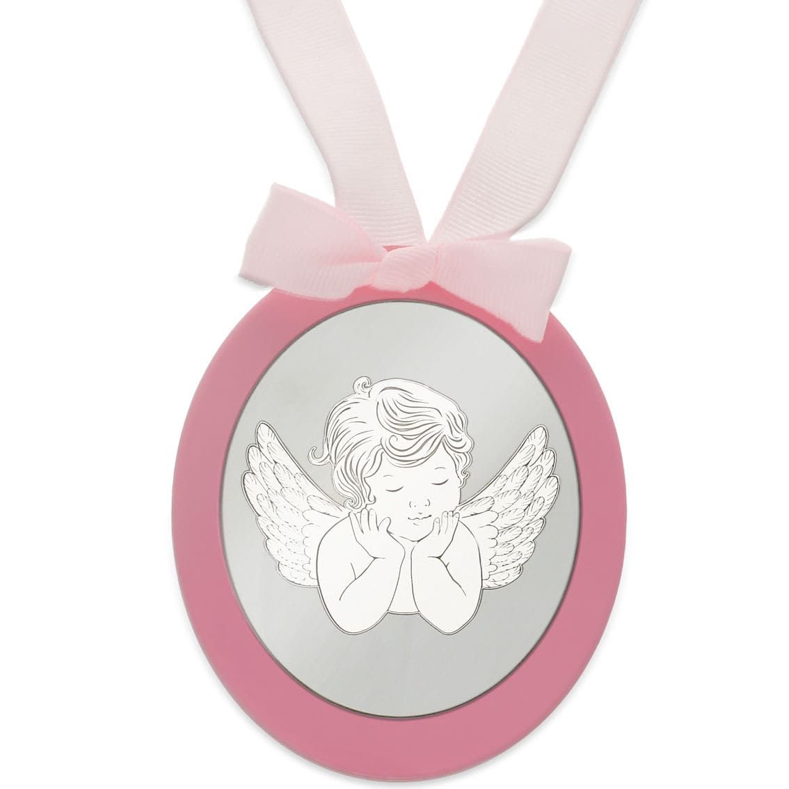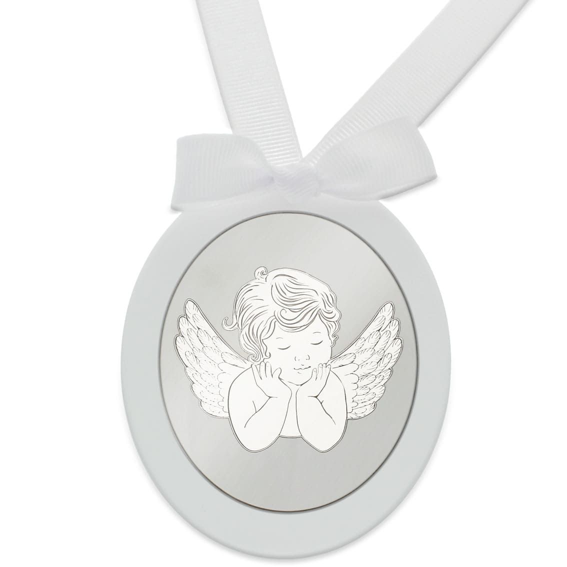 Medalla de Cuna con Chapa Ovalada grabada con un Angelito, en Plata de 1ªLey, 925 mm.