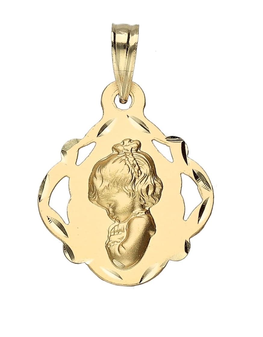 La medalla de la Virgen niña es el colgante más esencial que se les regala a los niños en la primera comunión, con la imagen de la Virgen María de niña.