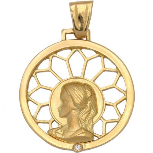 Medalla Redonda Calada de la Virgen Niña, en Oro de 18kts, 1ªLey.