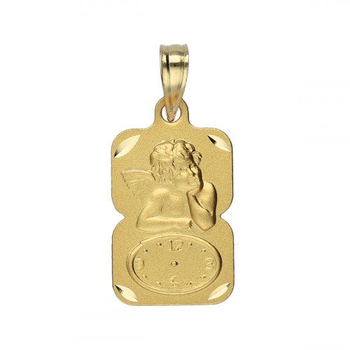 Medalla Rectangular con Ángel de la Guarda y Reloj, en Oro de 18kts, 1ªLey.