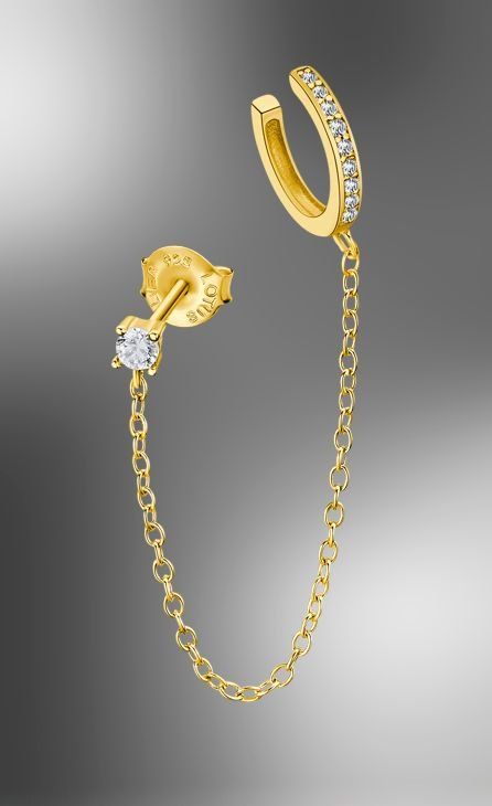 Con cadenita, circonitas engastadas, aro para el cartílago y cierre a presión.