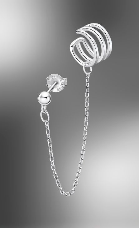 Con cadenita, aro triple para el cartílago y cierre a presión.