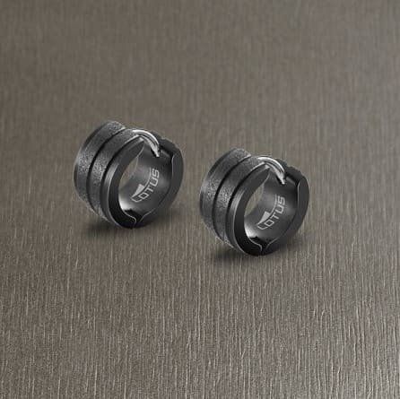 Pendientes de aro, en Acero Diamantado en ip Negro.