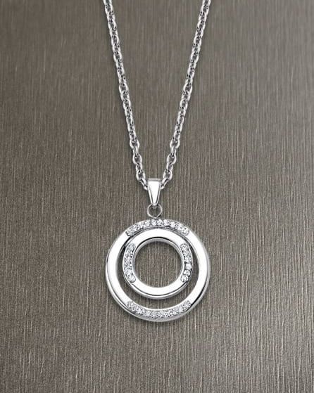 Con formas redondas colgando, circonitas engastadas y cierre a presión.