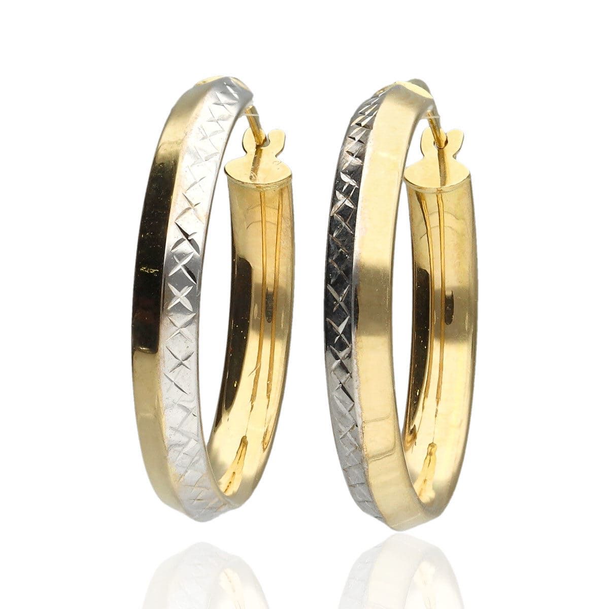Pendientes Bicolor de Aro Tallados, combinados en Oro Amarillo y Blanco de 18kts, 1ªLey.