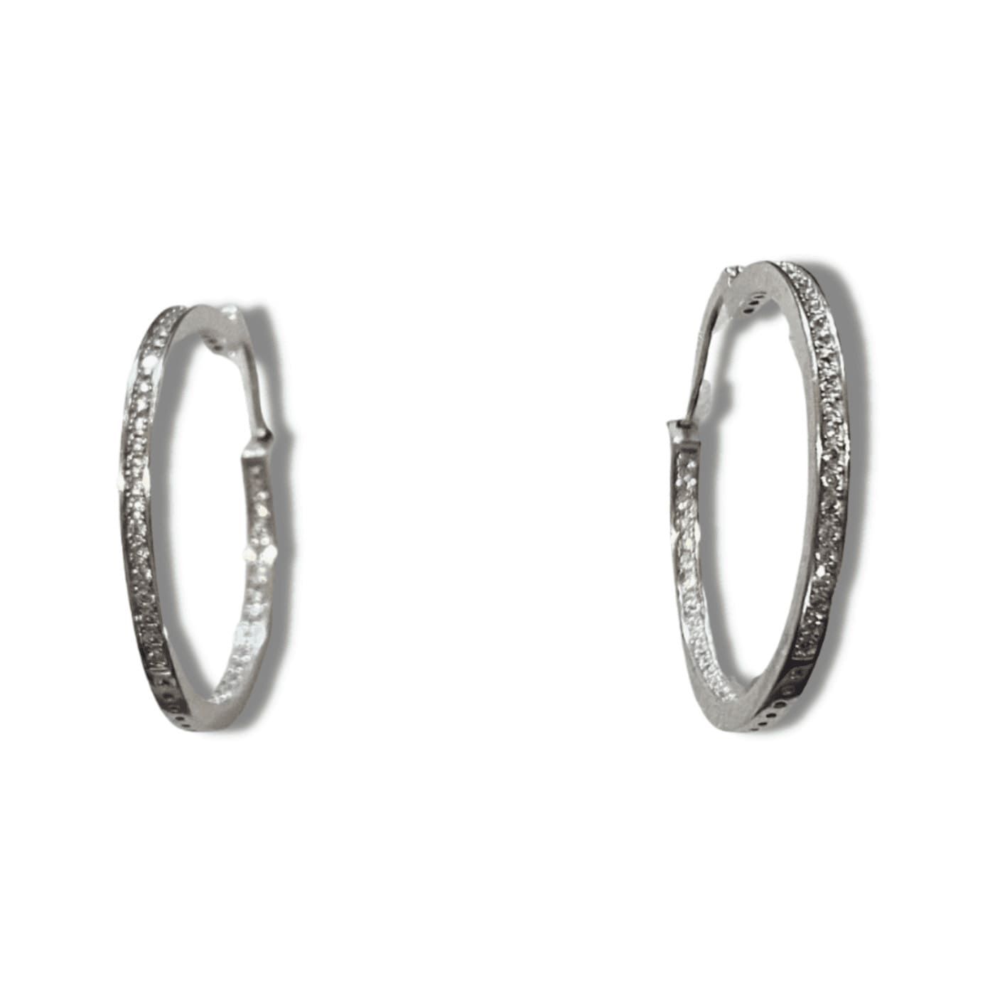 Pendientes de aro con circonitas frontales, de plata de 1ª ley, 925 mm.