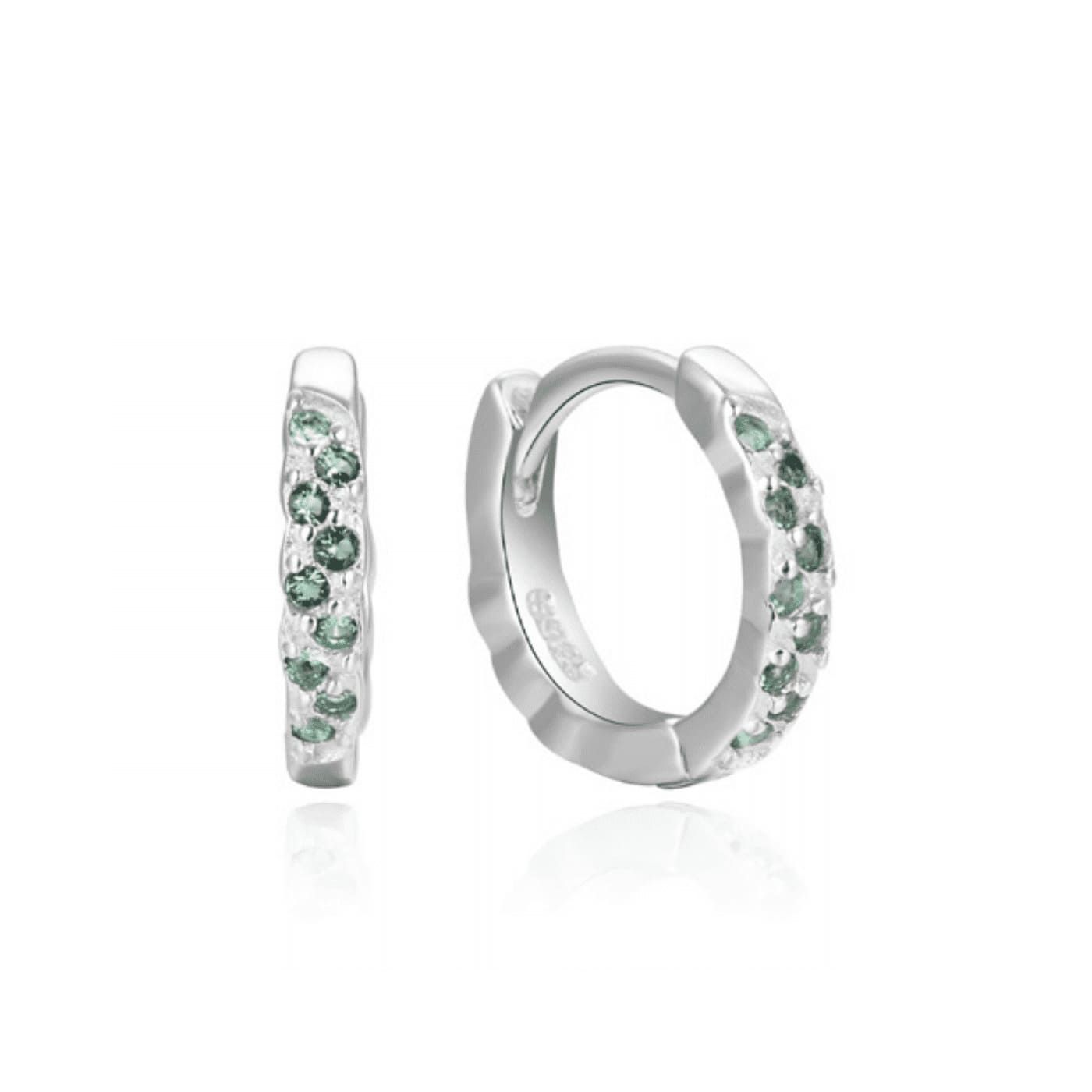 Pendientes de aro con circonitas en tono esmeralda engastadas, en plata de 1ª ley, 925 mm.
