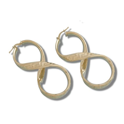 En forma de ocho con dibujo de la Greca, con medidas 33 x 67 mm y grosor de 7 mm.