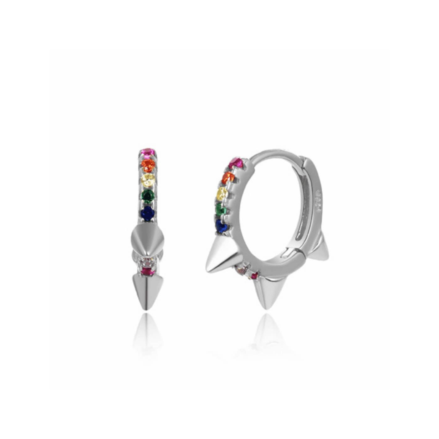Con baño de rodio, circonitas de colores engastadas y además formas de pinchos talladas en ellos.