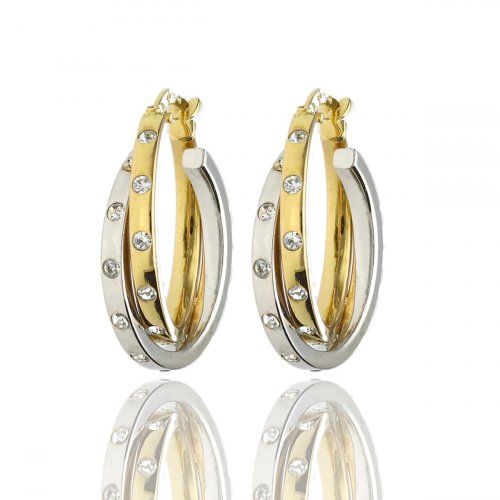Pendientes Bicolores de Aro, combinados en Oro Amarillo y Blanco de 18kts, 1ªLey.
